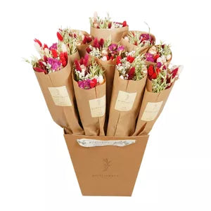 « Tout juste sorti du marché » Découvrez le charme de nos bouquets Market More, cueillis à la main pour évoquer la sensation des fleurs fraîchement achetées au marché aux fleurs. Chaque bouquet présente un assortiment captivant de couleurs, ce qui garantit un bouquet parfait pour tous les goûts et toutes les occasions. Emballés dans une feuille de papier kraft écologique, ils dégagent un délicieux mélange de simplicité et d'élégance. *À l'exclusion du seau*
